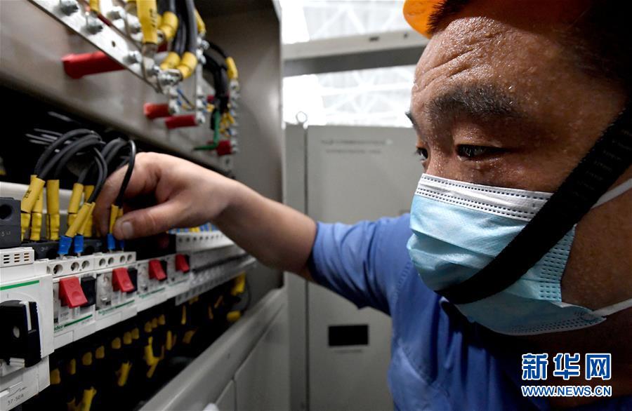在郑州机务段北检修车间,检修工人贾楠对机车控制电源柜进行检修作业(8月6日摄)。新华社记者 李安 摄