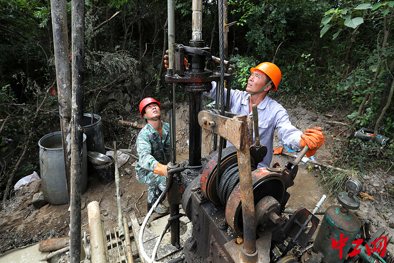 8月9日上午,浙江省舟山市定海区金塘岛西堠海岸边,工人师傅正头顶娇阳,在山坡上紧张地钻探着,为甬舟高速复线金塘至大沙段工程设计提取地质数据。据了解,这是为甬舟高速复线金塘至大沙段工程建设提取地质数据,为设计部门提供详尽的资料。(姚峰/视觉中国)