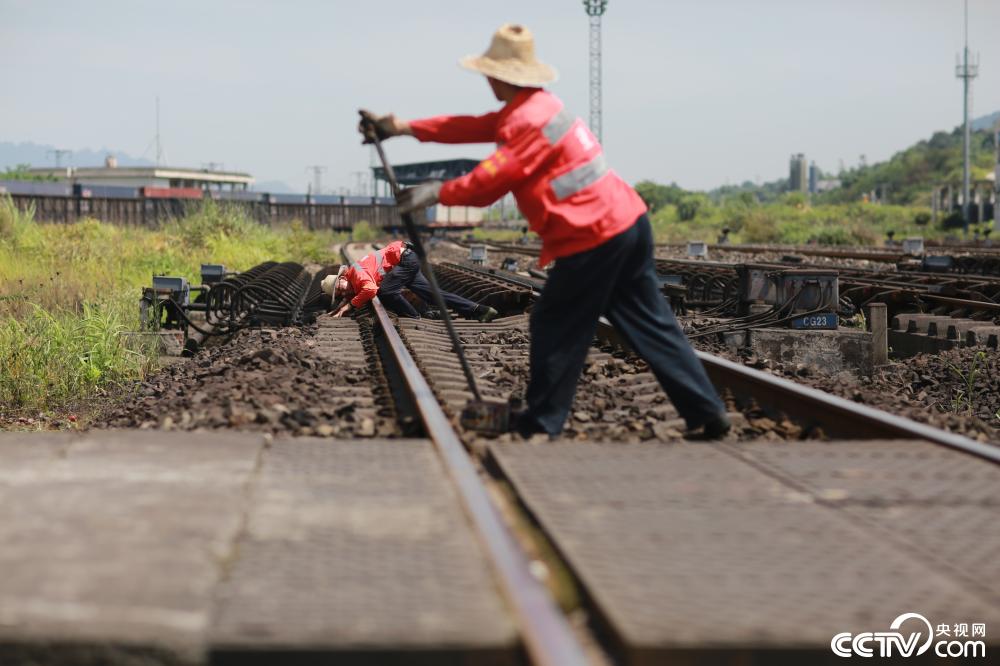 “我们工区现有16人,主要负责兴隆场编组场三场、四场、七场等共计96.914公里线路,179组道岔的巡检养护。今天主要进行设备巡检、起道捣固、绝缘接头排查整治作业。”工区党员工长谢以见介绍道。此时他正带着工友进行起道捣固作业,确保路线更加平顺。