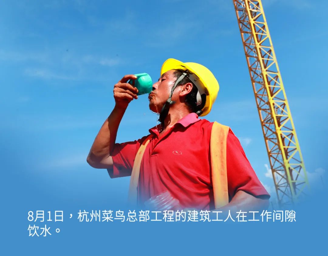 副热带高压控制下的浙江酷暑难耐,奋斗在一线的劳动者们依然坚守岗位。
