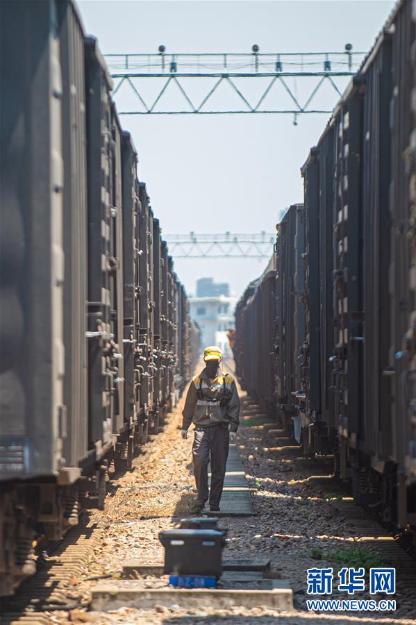 8月11日,刚刚完成一趟调车任务的调车员行走在列车之间。 当日,浙江杭州的最高气温超过37摄氏度。在杭州北郊的铁路乔司编组站,调车员们顶着骄阳作业。他们将一节节车厢重新编组,发向目的地,用自己的辛勤汗水,保障着铁路大动脉的顺畅运转。 新华社发(江汉 摄)