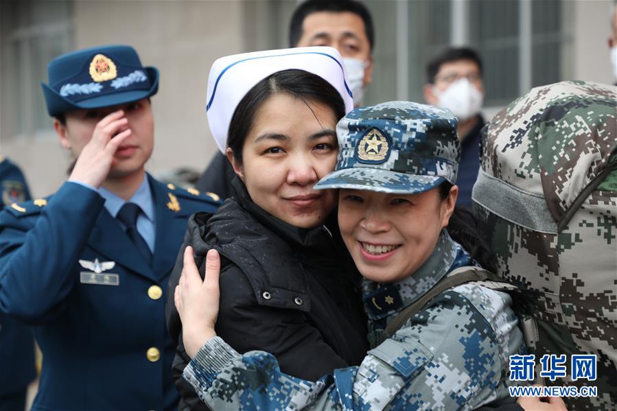 仲月霞(前右)出征武汉时和援非抗“埃”的战友相拥告别(1月24日摄)。 2003年,抗击非典,她在接诊一线。 2008年,汶川抗震,她在灾区一线。 2015年,援非抗“埃”,她在利比里亚抗击埃博拉病毒战斗一线。 今年春节万家团圆时,空军军医大学第二附属医院护理处主任护师仲月霞再次背起行囊,登上驰援武汉的飞机。 第一时间接收患者,第一时间深入隔离病区,第一时间转接患者……第一批来,最后一批走,仲月霞用一个个“第一时间”将“白衣战士”的冲锋姿态定格。 新华社发(纪冰冰 摄)