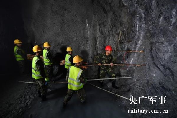 连绵大山,岩层深处,随着一声沙哑的大喊,一道3层楼高的岩石断面轰然破裂坍塌,碎石堆积成一座5米多高的小山。等到爆破警报解除,身材魁梧、皮肤黝黑的营长沙子呷带领3名老兵,从300米开外的通道拐角处冲上来,认真进行排险作业。