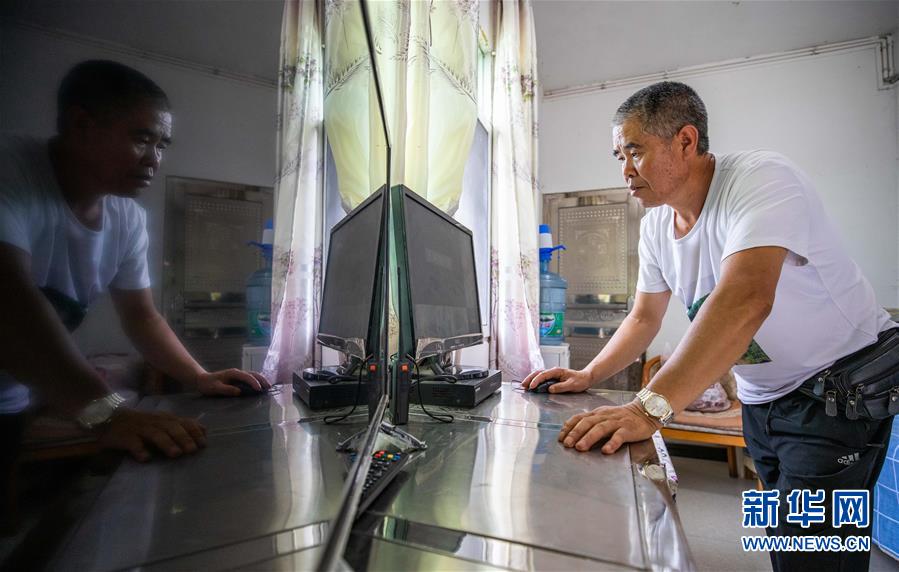 8月14日,在贵州省毕节市倒天河水库,王家勋在查看库区监控。新华社发(罗大富 摄)