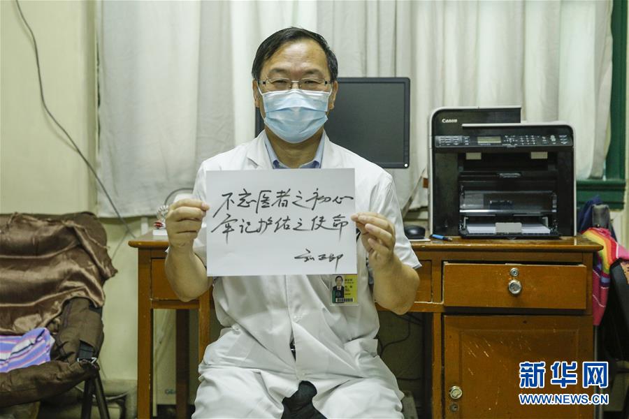 8月14日,刘正印在办公室展示写给中国医师节的寄语。新华社记者 张玉薇 摄