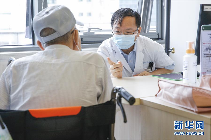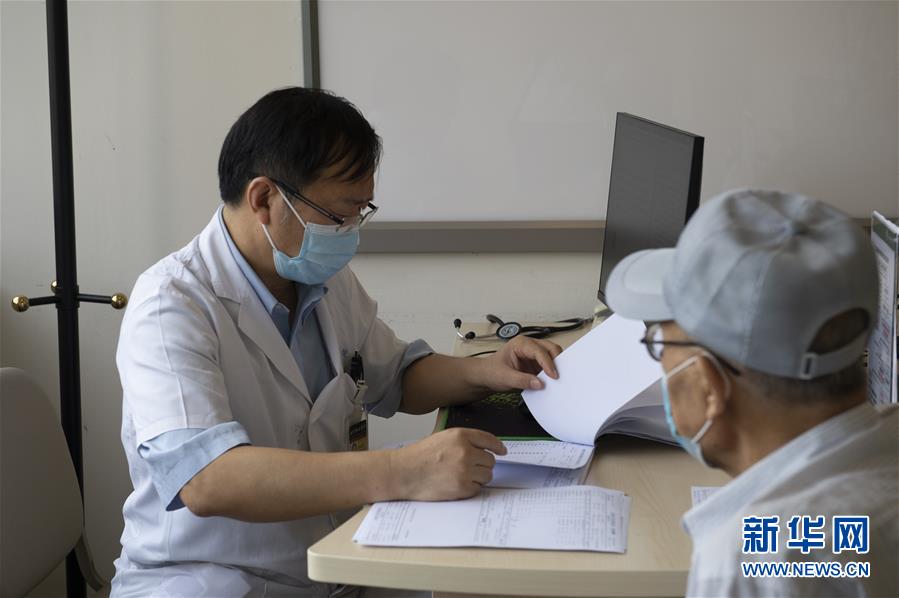 8月12日,刘正印在北京协和医院诊室内向患者询问病情。新华社发(蔡湘鑫 摄)