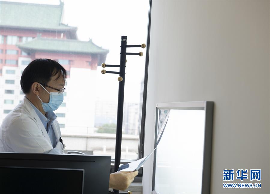 8月12日,刘正印在北京协和医院诊室内查看患者的影像检查结果。新华社发(蔡湘鑫 摄)