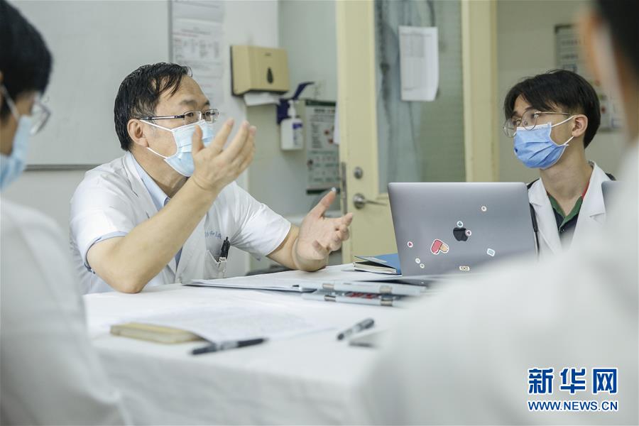 8月14日,刘正印和同事在北京协和医院感染内科病房讨论病历。新华社记者 张玉薇 摄