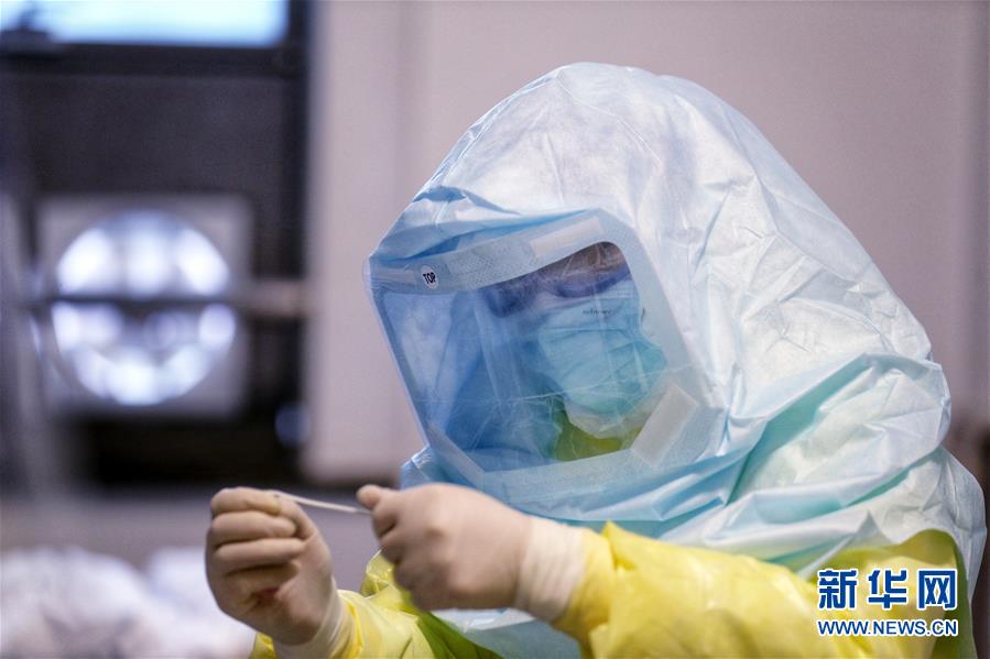 刘正印在湖北武汉同济医院中法新城院区为病人“采标”(2月14日摄)。新华社发(崔萌 摄)