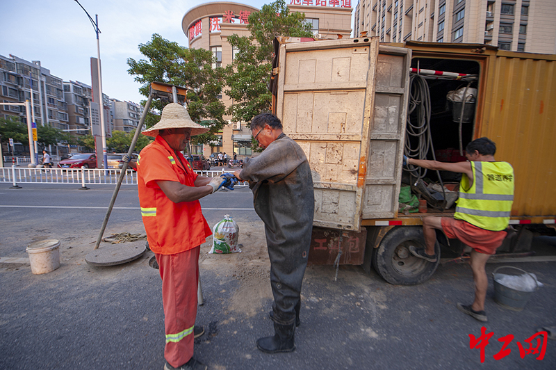 污水管道养护工需要穿上厚重的防护服进行下井工作。(宋伟/视觉中国)