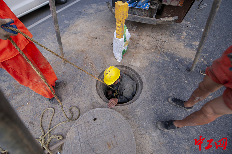 污水管道养护工需要穿上厚重的防护服进行下井工作。 (宋伟/视觉中国)