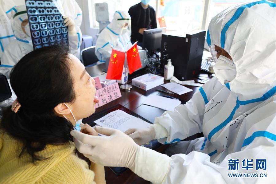 3月18日,刘清泉在湖北武汉市江夏普安山康复驿站(西院)为新冠肺炎康复者诊治。 新华社发(朱兴鑫 摄)