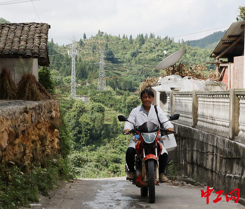 8月16日,湖南省湘西自治州保靖县清水坪镇黄连村乡村医生谢建华去附近的村寨给留守老人检查身体。(俞采华/视觉中国)