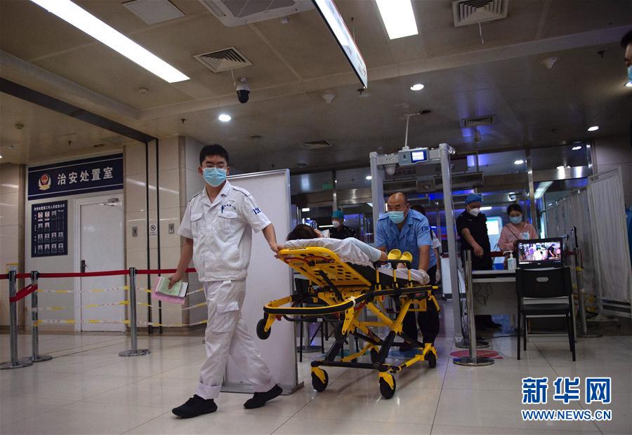 8月18日凌晨,120急救人员将患者送至北京朝阳医院急诊。 新华社记者 陈钟昊 摄