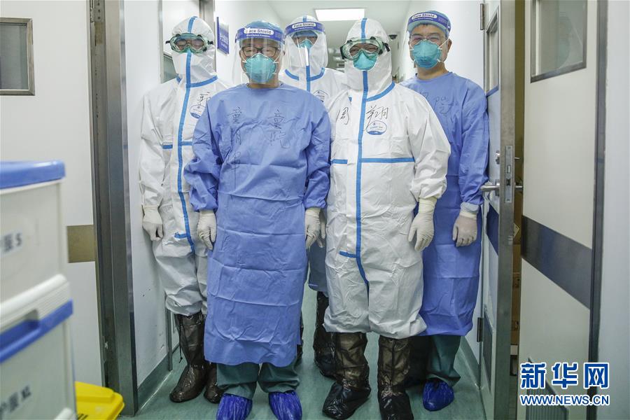 8月13日,来北京地坛医院增援的童朝晖在重症医学科和同事合影。 新华社记者 张玉薇 摄