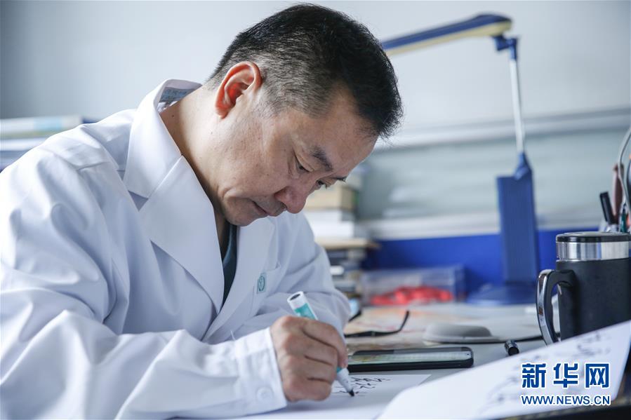 8月13日,来北京地坛医院增援的童朝晖在重症医学科办公室内。 新华社记者 刘金海 摄