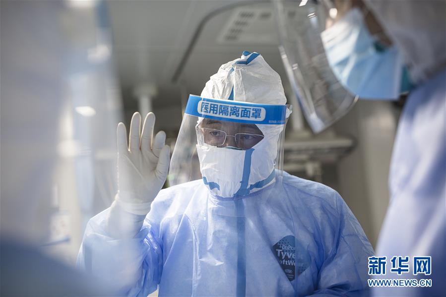 童朝晖在湖北武汉协和医院西院区病房内工作(2月26日摄)。 新华社发