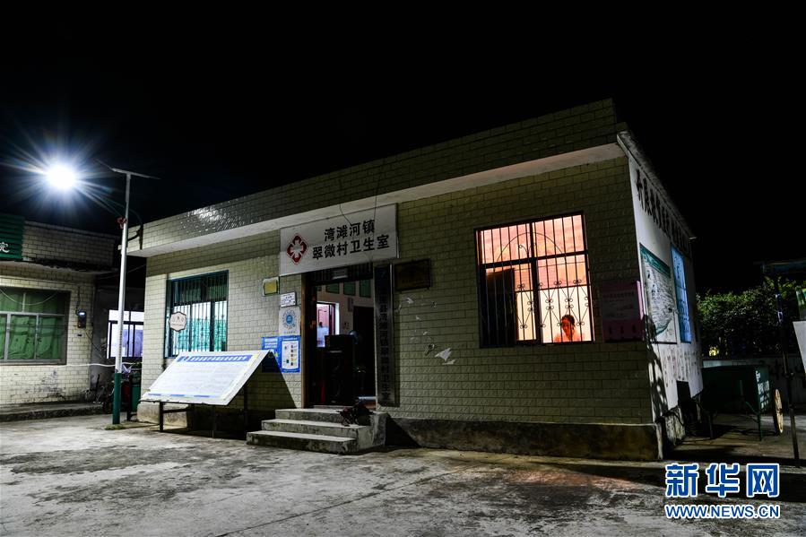 8月18日晚,罗木在龙里县湾滩河镇翠微村卫生室登记白天村民就医情况。 新华社记者 杨文斌 摄