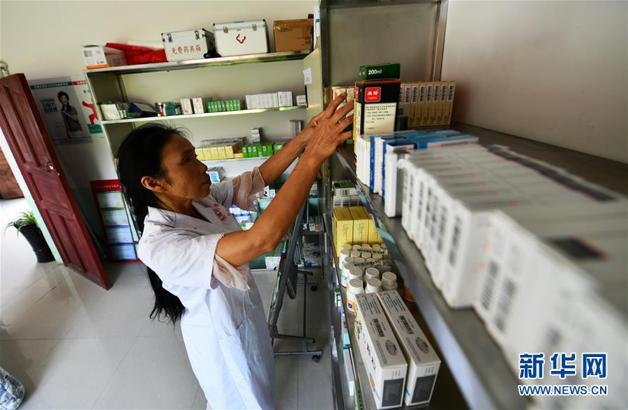 8月18日,罗木在翠微村卫生室为村民取药。 新华社记者 杨文斌 摄
