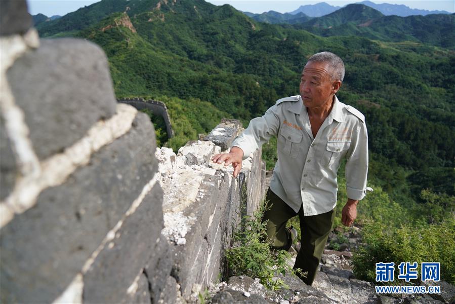 8月20日,张鹤珊在长城上巡视。新华社记者 牟宇 摄