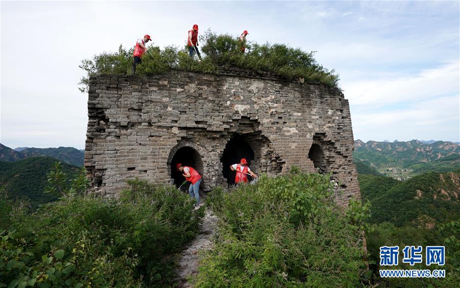 8月20日,秦皇岛阳光义工公益服务中心的志愿者在正冠岭长城捡拾垃圾。 河北秦皇岛阳光义工公益服务中心自成立之初就把清洁长城作为一项重要任务,定期组织志愿者清理长城沿线的垃圾,已坚持志愿行动18年。 新华社记者 王毓国 摄