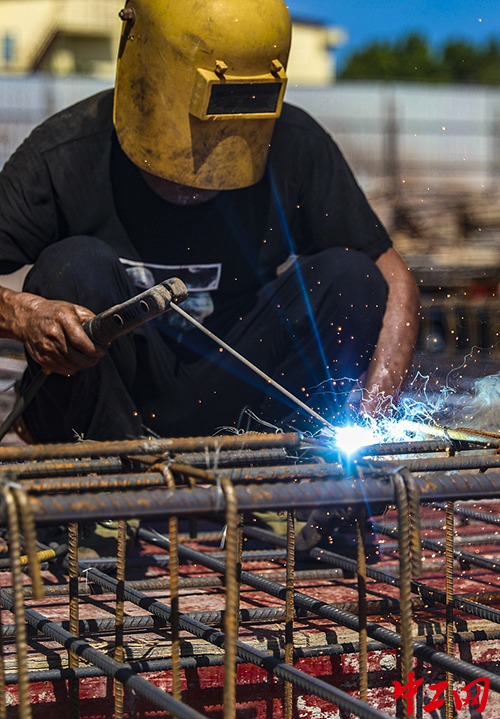 8月20日,在江西省吉安市泰和县安置房项目建设工地,工人冒着高温紧张施工。(司马天民/视觉中国)