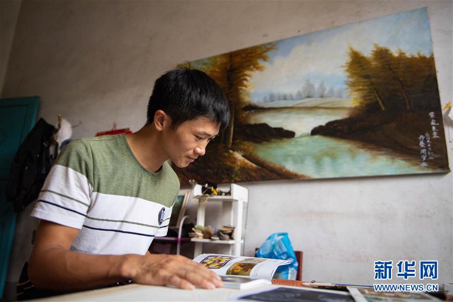 在横市镇云山村,肖明在阅读绘画书籍(8月19日摄)。新华社记者 陈思汗 摄