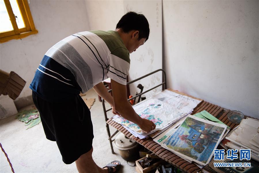 在横市镇云山村,肖明在整理画作(8月19日摄)。新华社记者 陈思汗 摄