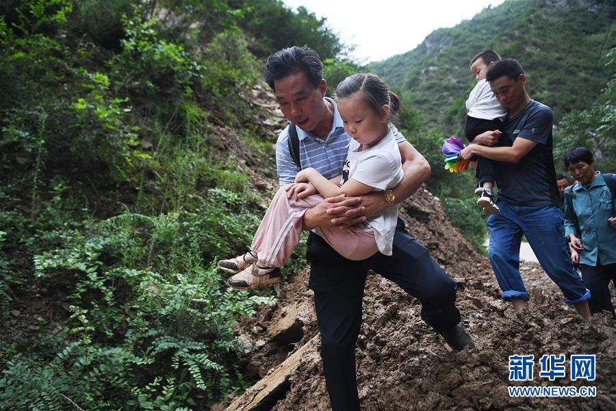 8月22日,在陇南市武都区洛塘镇和平村,家长带着孩子通过塌方路段前往学校所在地。临近开学,甘肃省陇南市各县区部分村庄通往外界的道路因暴洪、滑坡、泥石流等自然灾害中断。为确保孩子们顺利返校,当地组织多支道路抢险小分队,抢修中断的通村道路,一线干部群众和家长自发组织起志愿服务队,守护孩子们的平安上学路。新华社记者 陈斌 摄