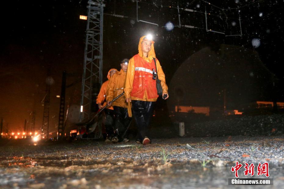 暴雨中的铁路守护者