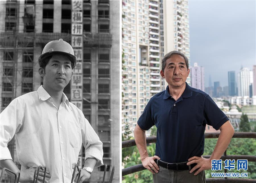 这是一张拼版照片。左图为1984年,深圳国际贸易中心大厦施工设计者之一、28岁的罗君东在施工现场留影(新华社记者刘玉生摄);右图为2018年12月5日在深圳市福田区家中拍摄的罗君东(新华社记者毛思倩摄)。