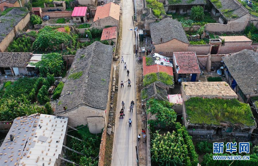 手提垃圾袋、脚踏轮滑鞋或平衡车的“环保小卫士”们在涌泉村街巷中穿梭捡拾路旁垃圾(8月25日摄,无人机照片)。 暑期的河北省张家口市蔚县涌泉庄乡涌泉村活跃着一群“环保小卫士”,他们中最小的仅六岁,大点的也不过十三、四岁,都是涌泉村村民。闲暇时,孩子们聚在一起,拾垃圾、清灌渠、改造绿地……为村里的卫生整治、环境保护做力所能及的工作。 新华社记者李贺摄