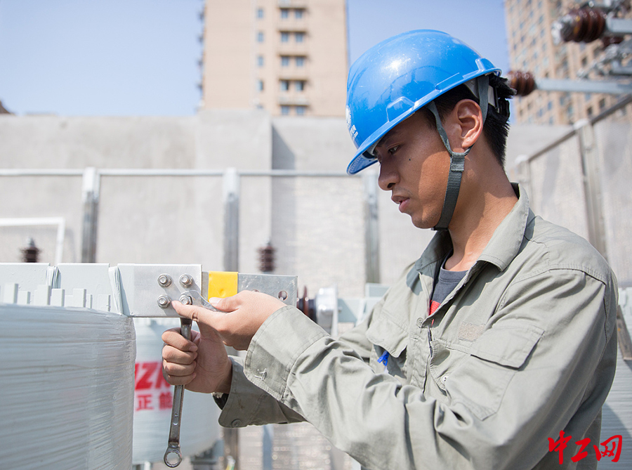 8月25日,江苏南通,国网如皋市供电公司运维人员在110千伏如皋变电所内作业。(徐慧/视觉中国)