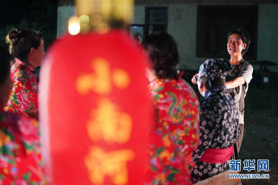 冷菊贞(右一)在小南河村给参加旅游项目的村民拍照(8月18日摄)。新华社记者 王建威 摄