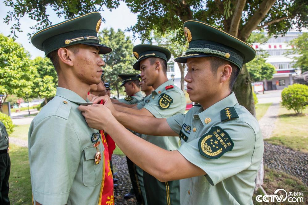2020年8月30日,指导员为退伍老兵卸警衔。