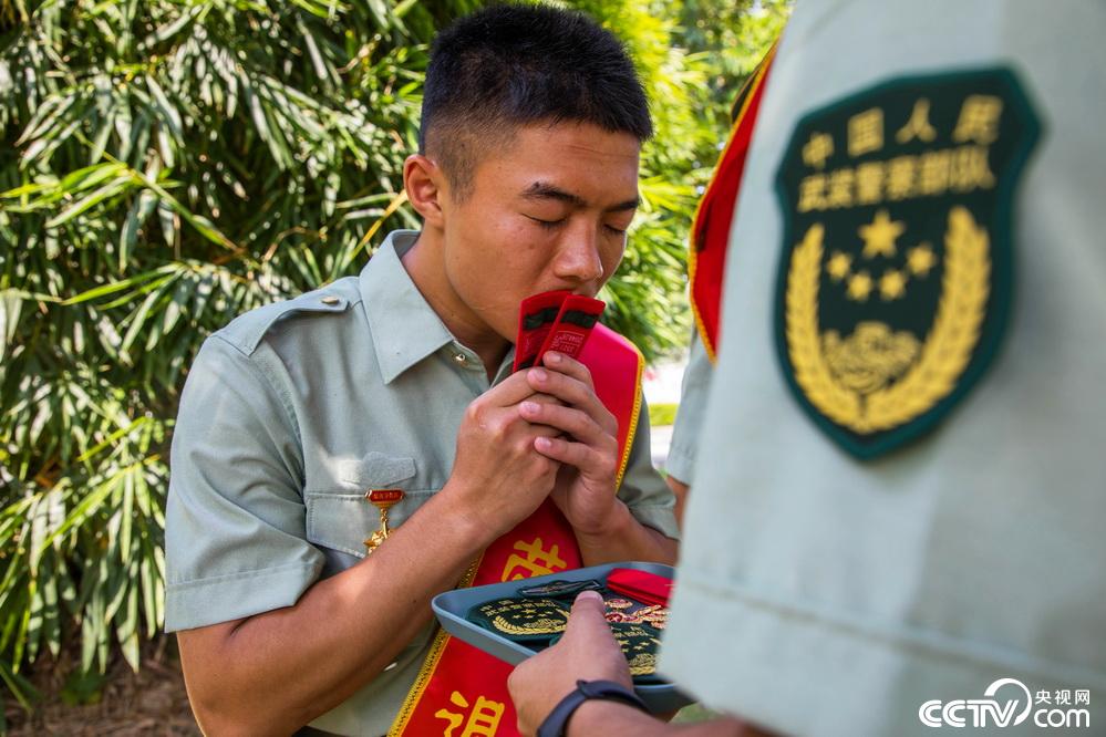 2020年8月30日,一名退伍老兵上交警衔时,依依不舍地亲吻警衔。