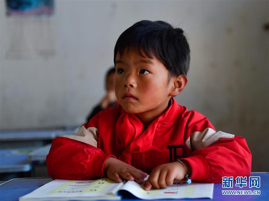 8月31日,在来塘村学校,一年级学生马秀梅在上课。 新华社记者 张龙 摄