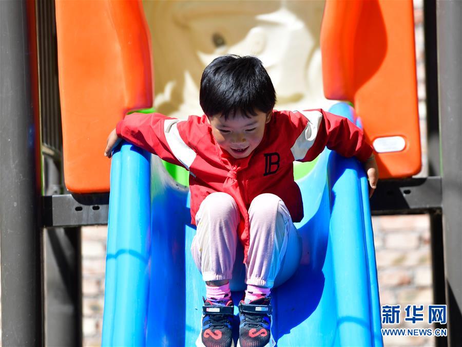 8月31日,在来塘村学校,一年级学生马秀梅在课间玩耍。 新华社记者 张龙 摄