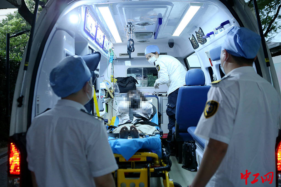 8月22日,上海,急救女医生石柳娴和搭档们分工明确。(签约供稿人/视觉中国)