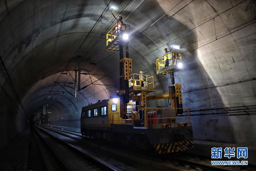 9月3日,贵阳高铁工务段职工利用三平台作业车在贵广高铁榕江至从江段内进行维修检查工作。 贵阳高铁工务段管内高速铁路桥隧比超过80%,并且大部分隧道穿越喀斯特地貌不良地质,在集中降雨作用下,易诱发隧道漏水、边坡溜坍等水害。2020年汛期以来的很多夜晚,贵阳高铁工务段利用超声波检测车、三平台作业车等高科技手段对各类隧道病害隐患进行整治,大幅度提高了工作效率,确保了高铁安全。截至目前,该段已经完成排查隧道454座,发现问题并整治132个。 新华社记者 刘续 摄