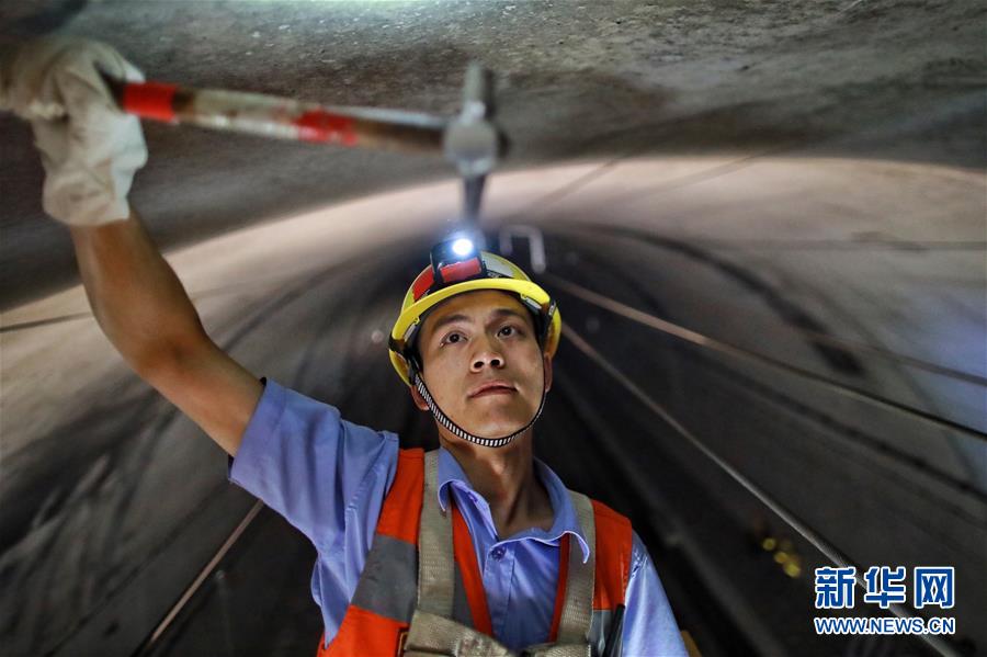 9月3日,贵阳高铁工务段职工在贵广高铁榕江至从江段内进行维修检查工作。 贵阳高铁工务段管内高速铁路桥隧比超过80%,并且大部分隧道穿越喀斯特地貌不良地质,在集中降雨作用下,易诱发隧道漏水、边坡溜坍等水害。2020年汛期以来的很多夜晚,贵阳高铁工务段利用超声波检测车、三平台作业车等高科技手段对各类隧道病害隐患进行整治,大幅度提高了工作效率,确保了高铁安全。截至目前,该段已经完成排查隧道454座,发现问题并整治132个。 新华社记者 刘续 摄