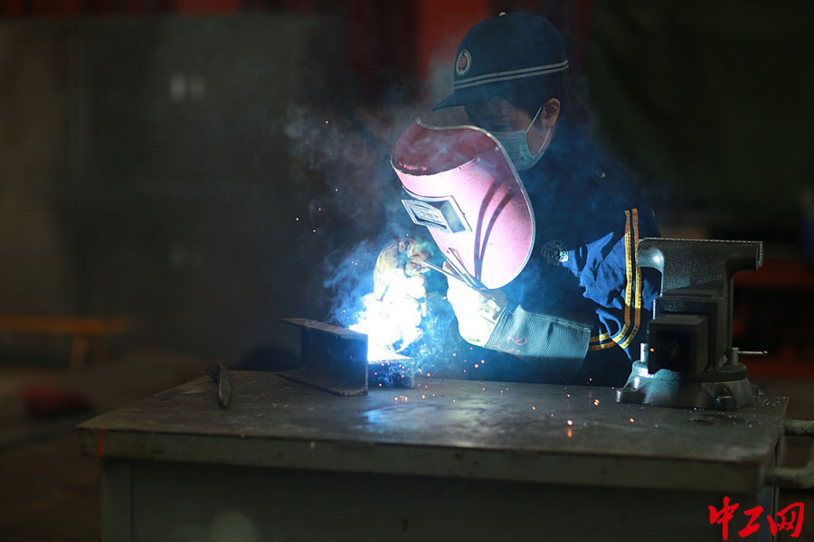 9月2日,言语不多,面带笑容,面对镜头还有些许腼腆。一身防护服,一双防烫鞋,一把焊枪,一个电焊罩,一个工作帽,是她将近三十年的最美装扮。她就是重庆机务段检修车间唯一的女电焊工殷燕飞。(苏志刚/视觉中国)