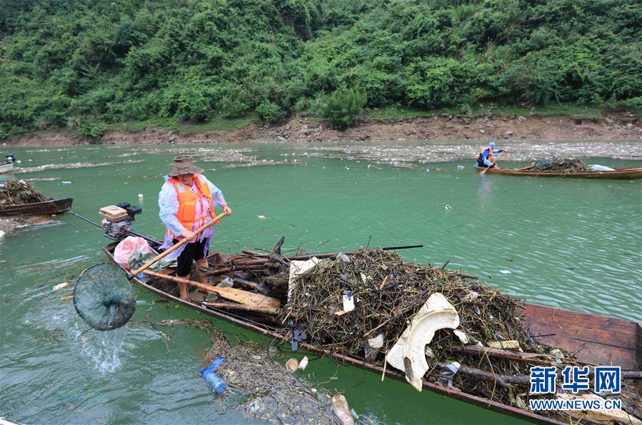 近年来,张家界市严格落实河长制相关要求,着力保护茅岩河水资源生态环境。在建立健全日常巡查、监督、管护的基础上,常态化对河道上的落叶、枯木等漂浮物进行清理,保持河道畅通和水面整洁。 新华社发(吴勇兵 摄)