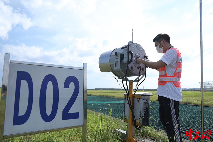 8月4日,重庆,机场空旷的草坪是鸟类喜爱的栖息地之一,除了驱鸟,驱鸟员们还要定期检查草坪植物生长情况,定期割草、杀虫,切断飞鸟的食物链。(来源:视觉中国)