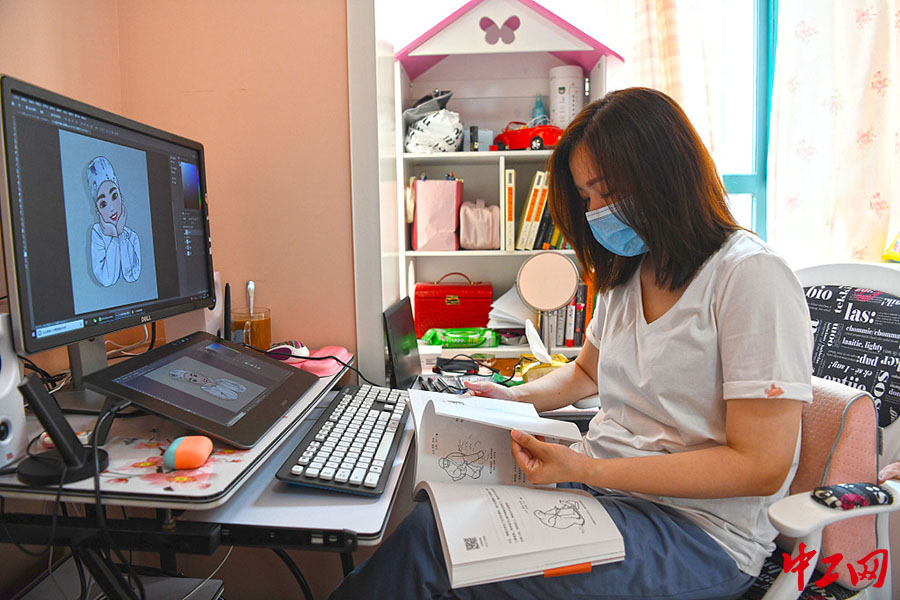 5月17日,武汉“方舱手绘小姐姐”黎婧在家继续创作(来源:人民视觉)