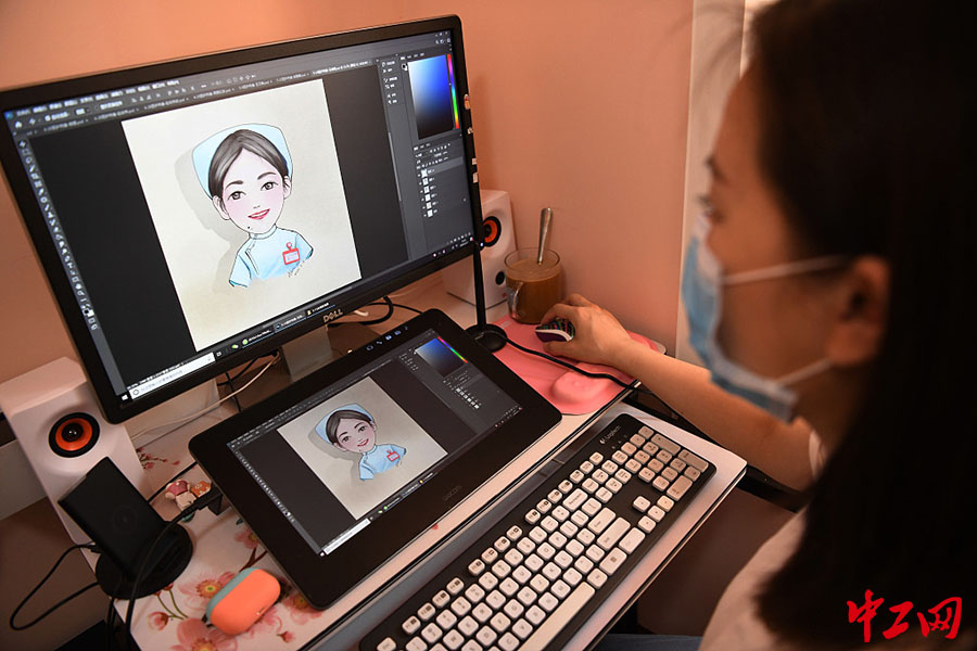 5月17日,武汉“方舱手绘小姐姐”黎婧在家继续创作(来源:人民视觉)
