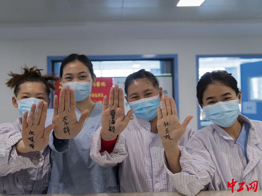 2月16日13点,武汉,华中科技大学同济医学院附属同济医院中法新城院区,从红区换班出来的北京协和医院援鄂医疗队的“90后”护士。(来源:人民视觉)