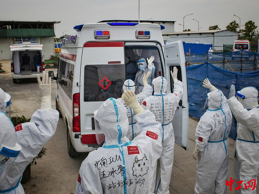 4月14日,武汉,最后一批新冠肺炎患者转院,雷神山医院患者清零。(来源:人民视觉)