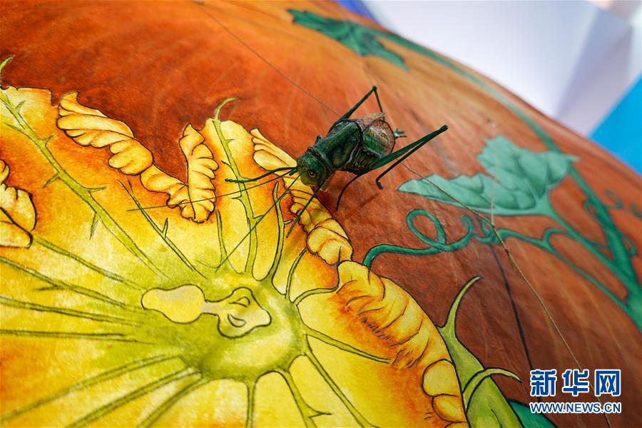 这是9月8日在服贸会文化体育融合展区的北京市风筝协会展台拍摄的陈业嘉自制的风筝。 新华社记者 张笑宇 摄