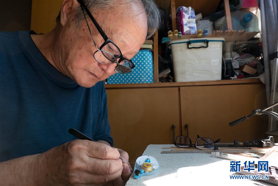 9月8日,陈业嘉在家中调试微型风筝。 新华社记者 张笑宇 摄